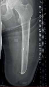 Jeder Sensor hat einen Durchmesser von etwa 2,5 mm und eine Länge von 16 mm, wobei die kundenspezifische Elektronik in einem Keramikzylinder untergebracht ist. Jedes Zylinderende ist aus leitfähigem Metall hergestellt, das als Elektrode dient (Abb. 2). Nach der Implantation wurden Röntgenbilder aufgenommen, um zu bestätigen, dass das Implantat an der richtigen Stelle sitzt, entsprechend der beabsichtigten Platzierung des Schafts (Abb. 3). Nachdem die Sensoren in die verbleibenden Muskeln des Stumpfes implantiert wurden, kann der im Prothesenschaft untergebrachte Spiral-Empfänger dazu verwendet werden, drahtlos über ein magnetisches Feld Energie und Informationen an die IMES zu übermitteln und von diesen zu empfangen. Der Spiraldraht-Empfänger wird mittels eines Spulentreibers gesteuert, der das magnetische Feld reguliert. Die IMES-Steuerschnittstelle versorgt den IMES mit Energie, sorgt für die Programmierung, empfängt Daten vom IMES und ist mit dem Message Broker für das bionische Signal (BSMB = „bionic signal message broker“) verbunden, der das IMES-System und die Prothesen von Össur miteinander verbindet (Abb. 4). Die IMES sind aufgrund von Stabilitätsproblemen nur in der Lage, gefilterte, gleichgerichtete und integrierte Signale zu versenden, und die Abtastrate des Sensors betrug 236 Abtastwerte pro Sekunde.