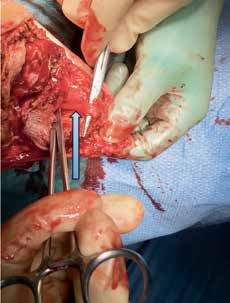 Alle durchtrennten Nerven bilden nach einer Amputation als typische Spätkomplikation ein Neurom. Unzählige Techniken und Technologien wurden entwickelt und vorgeschlagen, um Neuromen und deren akuten Folgen vorzubeugen. Keine dieser Techniken konnte zeigen, dass sie der konventionellen einfachen Neurotomie überlegen ist, wenn der Operateur bei der Amputation einige wichtige Faktoren beachtet. Dazu zählen die ausreichende Kürzung des Nerven und dessen Einbettung in eine gut gepolsterte Region. Die Einbettung erfolgt meistens in die Muskulatur, in der der Nerv vor Druck und mechanischer Irritation geschützt ist. Werden Nerven nicht ausreichend gekürzt und/oder in eine gut gepolsterte Region gelegt, dann liegen sie knapp unter der Haut und teilweise auf dem Knochen, sodass sie stark elektrisierende Schmerzen verursachen und eine Prothesenversorgung teilweise unmöglich machen können. Der N. suralis ist sicherlich mit am häufigsten von o. g. Komplikationen betroffen, da er leider immer wieder bei der Unterschenkelamputation im wahrsten Sinne des Wortes „vergessen“ wird zu versorgen (Abb. 2). Wendet man dann noch die Burgess-Technik an, kommt der Nerv direkt am vorderen tibialen knöchernen Stumpfende zu liegen und wächst meistens in die Hautnarbe ein, mit konsekutiver Ausbildung starker elektrisierender Schmerzen.