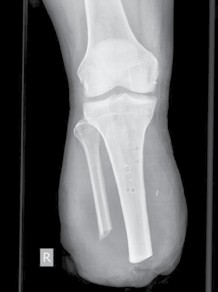 Knochenkanten, Exostosen und heterotope Ossifikationen treten nicht selten nach Amputationen auf. Diese Folgen könnten evtl. durch achtsamen Umgang mit dem Knochen und dem dazugehörigen Periost während der Amputation verhindert werden. Bei der Osteotomie des Knochens sollte beachtet werden, dass das Ende nicht schräg und spitz gesägt wird, sondern derart, dass eine möglichst große lasttragende Fläche gebildet wird und die Kanten sorgfältig abgerundet werden. Ferner sollte das Periost nicht exzessiv gestrippt und Periostfetzen liegen gelassen werden. Ein weiterer Fehler die Unterschenkelamputation betreffend besteht darin, die Fibula länger zu belassen als die Tibia. Des Weiteren darf die Osteotomieebene der Fibula nicht falsch angesetzt werden (Abb. 3). Beim kurzen Unterschenkelstumpf sollte die proximale Fibula zudem nicht belassen werden, da die fehlende Membrana interossea zu einer Hypermobilität der restlichen Fibula führen kann. Bei Vorliegen einer solchen Instabilität kann zunächst versucht werden, den Schaft auszubessern und der hypermobilen Fibula ausreichend Platz zu geben. Falls dies nicht zur Beschwerdefreiheit führt, sollte die restliche Fibula vollständig reseziert werden.