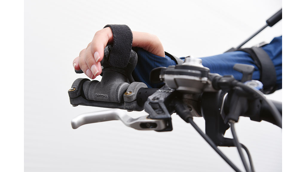 Beim „einhändigen“ Fahren von Zweirädern, egal ob mit oder ohne Motor, stellen sich folgende Probleme: Den Lenker mit nur einer Hand zu stabilisieren, ist auf ebenem Untergrund zwar gut möglich, wird mit zunehmenden Unebenheiten oder Neigungen aber immer schwieriger und kraftfordernder. Dieses kann mit einer Orthese gelöst werden, die eine Kraftübertragung vom Lenker direkt auf den Oberarm oder Brustkorb ermöglicht.