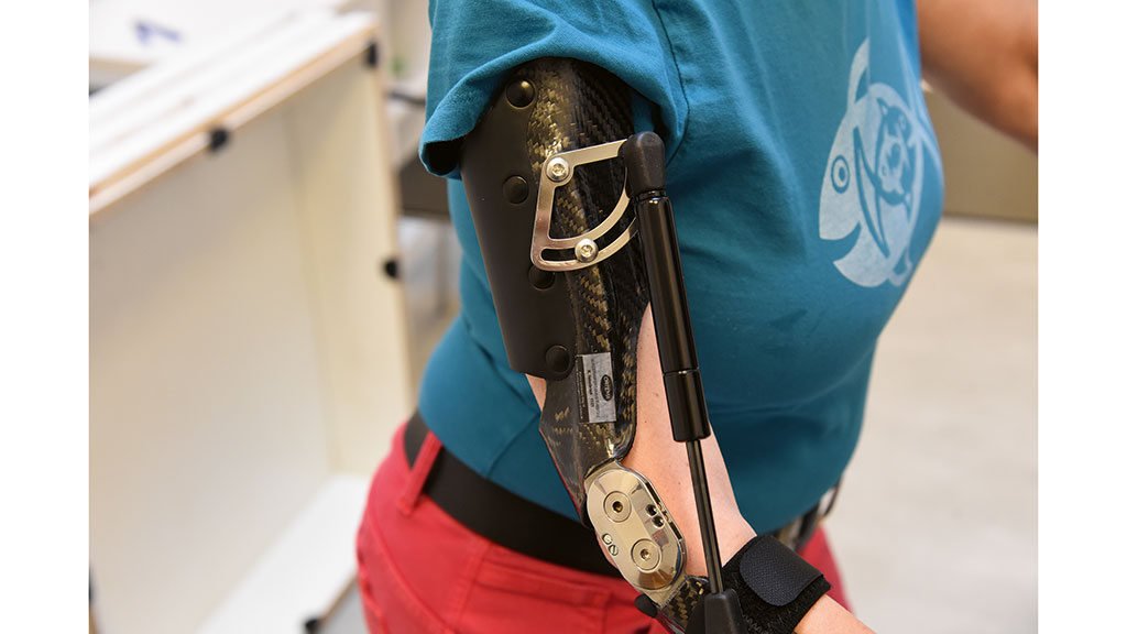 Während die Nutzung myoelektrischer Signale zur Steuerung eines Hilfsmittels in der Prothetik schon lange etabliert ist, kommt diese in der Orthetik noch deutlich seltener zum Einsatz. In den letzten Jahren kamen mit Systemen wie der „MyoPro“, der „Neo1“ oder der „Exomotion hand one“ allerdings mehrere myoelektrische Orthesensysteme auf den Markt. Diese ermöglichen Anwendenden aktives Greifen und bei der „Neo1“ auch aktive Ellenbogenextension und ‑flexion14 15 16. Ellenbogenfreie Systeme wie die „Exomotion hand one“ lassen sich auch mit der Wilmer Trageorthese kombinieren17. Kontrakturen und das Finden eines geeigneten EMG-Signals sowie ein instabiles Schultergelenk können die Versorgung von Patienten mit Läsion des P. brachialis mit myoelektrischen Orthesen erschweren, müssen je nach verwendetem Orthesensystem aber keine absoluten Kontraindikationen sein. Eine myoelektrische Orthese im Alltag effektiv einsetzen zu können, benötigt zwar langes und intensives Training, kann den Anwendenden aber bei zahlreichen Aktivitäten des täglichen Lebens eine große Hilfe sein. Als Therapiegeräte, beispielsweise zum Verbessern der ROM oder zur Korrekturprophylaxe, sind myoelektrische Orthesen in der Regel nicht gedacht, auch wenn dies ein regelmäßig auftretender erfreulicher Nebeneffekt ist18 19 20.