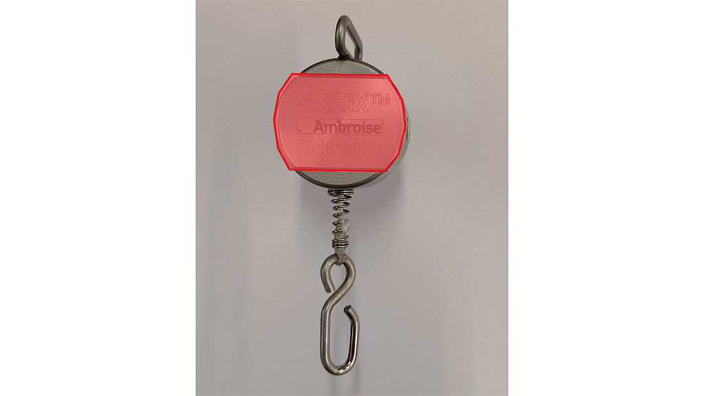 Bei der ursprünglichen konfektionierten Wilmer Trageorthese erfolgt die Verbindung von Schulterbandage und Unterarmlagerung mithilfe einer sog. „Vertix“ (Abb. 5). Sie wird mit einem Gurt an der Schulterbandage befestigt und besteht aus einer Spule mit einem Seil, an welchem ein Haken befestigt ist. Die Spule kann vom Anwender an der Unterarmauflage ein- und ausgehakt werden. So kann der Anwender erst die Schulterbandage anziehen, dann die Unterarmauflage anlegen und zum Schluss beide miteinander verbinden – dies erleichtert das Anlegen der Orthese wesentlich.
