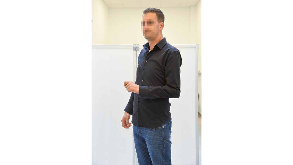 Herr B. zog sich bei einem Motorradunfall eine Läsion des P. brachialis zu. Arm‑, Hand- und Schultermuskulatur fallen funktionell aus. Unterarm und Hand sind nicht, der Oberarm nur in Teilen sensibel. 2013 gehört er zu den ersten, die in unserem Haus mit einer Orthese zum Zweiradfahren versorgt wurden. An der Planung und Umsetzung seiner Orthese wirkte er intensiv mit.