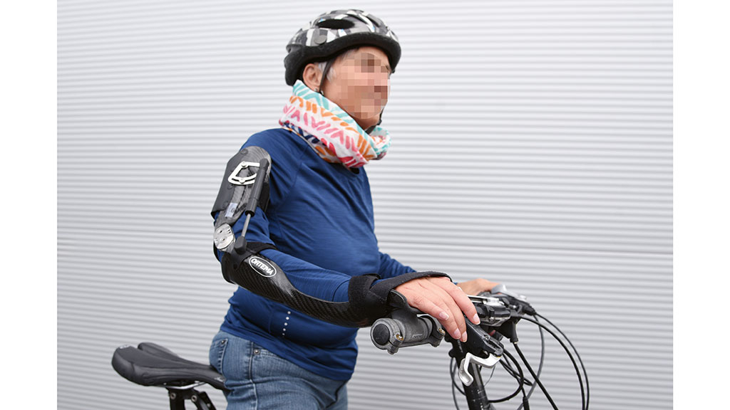 2021 kommt sie im Alter von gut 50 Jahren im beschriebenen Zustand zu uns und äußert den Wunsch nach einer Orthese zum Fahrradfahren. Einhändig unternahm sie bereits Fahrversuche, welche auf ebenem Untergrund auch gelangen. Bordsteine, Neigungen oder Schotter sind aber kaum zu bewältigen, sodass auch gemäßigte Radtouren kaum möglich und mit großer Unsicherheit verbunden sind.