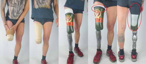 Die biomechanisch idealen Voraussetzungen, die Knieexanwender mitbringen (langer Hebelarm, ausgeprägte Kraftentfaltung, Stumpf-Endbelastbarkeit), sollten so kompromisslos wie möglich genutzt werden. Die Beschaffenheit der Stümpfe in Verbindung mit den langen Hebeln eignet sich auf ideale Weise, um feste Schaftanteile auf ein Minimum zu reduzieren und durch den richtigen Materialmix den Schäften mehr Komfort und eine bessere Anpassungsfähigkeit zu verleihen.