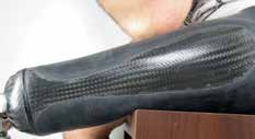 Die tragenden Anteile des definitiven Epoxidrahmens werden beim PBSS-Knieex-Schaftsystem auf ein Minimum reduziert. Um das Gewicht niedrig zu halten, werden Sandwichmaterialien eingesetzt. Die Realisierung der adaptiven Schaftzonen erfolgt durch eine individuelle HTV-Silikonschafttechnik, die mit dem Carbonrahmen fest verbunden wird. Eingearbeitete Funktionsstrukturen im Silikon-Material wirken einer ungewollten Dehnung des Materials bei Belastung sowie einer Materialermüdung entgegen und stabilisieren das Schaftkonstrukt beim Gehen entsprechend. Gerade diese Funktionsstrukturen ermöglichen auch eine dünne Wandstärke des Silikonschaftes und somit eine gesteigerte Flexibilität gegenüber konventionellen Materialien. Eine Verstärkung des Containers mit Gurtbändern oder Textilgeweben wird überflüssig (Abb. 9).