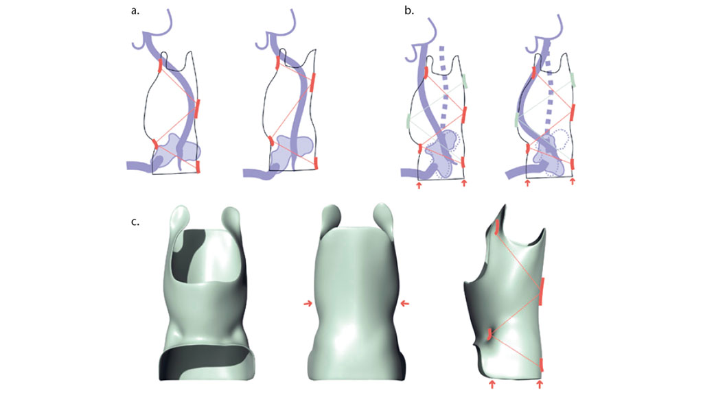 Bei der Herstellung von Rumpforthesen für die Behandlung neuromuskulärer Erkrankungen wird häufig das erforderliche biomechanische Design nicht bedacht. Grundsätzlich sind die Mechanismen zur Korrektur durch Hebelgesetze vorbestimmt. Es kann als logische Konsequenz nur einen Weg geben, wie Orthesen drei- oder zweidimensional auf Körperstrukturen einwirken können. Unabhängig davon, ob die orthetischen Hilfsmittel nach Gipsabdruck oder mit gewöhnlichen CAD-Systemen hergestellt werden, modelliert ein (Orthopädie-)Techniker das biomechanische Design entsprechend seiner individuellen Interpretation und Ausbildung. Das auf diese Weise konstruierte Hilfsmittel wird in der Regel ohne weitere Qualitätskontrolle abgegeben.