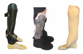 Für aktive Anwender sind energierückgebende Carbonfeder-Prothesenfüße und mikroprozessorgesteuerte Kniesysteme in besonderem Maße gefragt. Von entsprechenden Anwendern wird zumeist auch ein zweiteiliges Kosmetiksystem gefordert, da so jegliche Beeinträchtigung der Kosmetik auf die Funktionalität des Kniesystems ausgeschlossen werden kann (Abb. 5). Es empfiehlt sich in jedem Fall, den Funktionszugewinn derartiger Systeme mit dem Verordner und den Anwendern zu eruieren, die Funktionalitäten zu erproben und nach erfolgreicher Austestung gemeinsam mit dem Kostenträger adäquate Möglichkeiten der Kostenerstattung zu erörtern. Die kosmetische Gestaltung von Orthoprothesen nimmt für viele Betroffene einen wichtigen Stellenwert ein. Hierbei kommen neben dem Wunsch nach einem natürlichen Aussehen 11 oftmals auch funktionale Aspekte wie Wasserfestigkeit, das Tragen von offenem Schuhwerk oder gar von Flip-Flops u. v. m. zum Tragen.