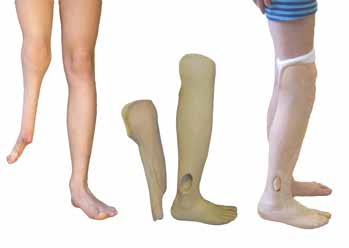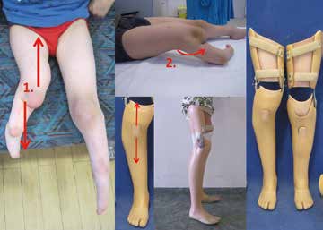 Für den Orthopädie-Techniker ist es daher bereits vor der Durchführung jeglicher Formabnahmen der fehlgebildeten Extremität wichtig zu wissen, in welcher Stellung das Bein bestmöglich mit dem funktionalen Aufbau der Orthoprothese korreliert (Abb. 3). Beim dreidimensionalen Aufbau einer Orthoprothese sind die biomechanischen Aufbaukriterien aus dem Prothesenbau anzuwenden und etwaige körperliche Abweichungen oder Dysfunktionalitäten angemessen zu berücksichtigen.