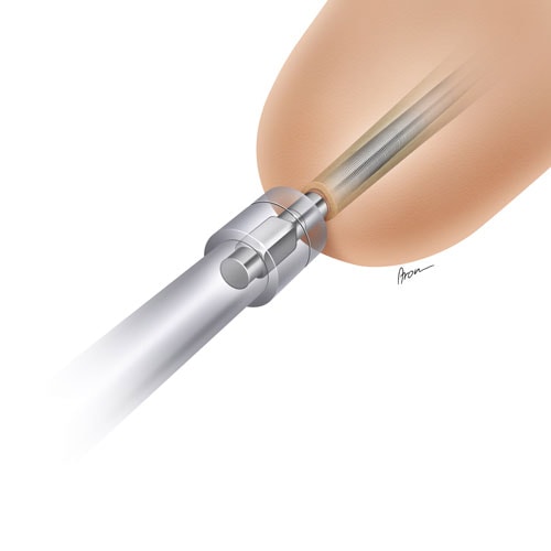 Zur Operationsplanung ist es sinnvoll, eine Computertomografie des Stumpfes durchzuführen – einerseits, um die Knochenqualität zu beurteilen, andererseits, um die notwendige Implantatgröße festzustellen. Bei gesunden Patienten mit guter Knochenverfassung und langem Stumpf führen die Autoren dieses Artikels mittlerweile die Implantation des OPRA-Systems im Rahmen eines einzeitigen operativen Eingriffs durch. Bei dünneren Knochen oder sehr kurzen Stumpflängen ist dagegen zu empfehlen, in einer ersten Operation nur das intramedulläre Implantat einzubringen. Im Rahmen dessen kann zudem, falls notwendig, eine chirurgische Verlängerung des Knochens vorgenommen werden. Dazu wird Knochenmaterial aus dem Beckenkamm des Patienten entnommen und am Stumpfende eingebracht. Nach einer Einheilungsphase von etwa drei Monaten wird dann in einem zweiten Eingriff der Hautdurchtritt geschaffen und das externe Abutment mit dem intramedullären Implantat verbunden. Diesem Schritt der Osseointegration kommt größte Bedeutung zu, da der Operateur hier maßgeblich zum Erfolg oder auch Misserfolg der späteren Versorgung beitragen kann.