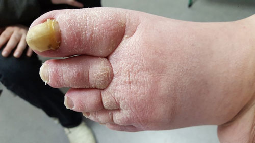- häufig mit positivem Stemmer’schem Hautfaltenzeichen,