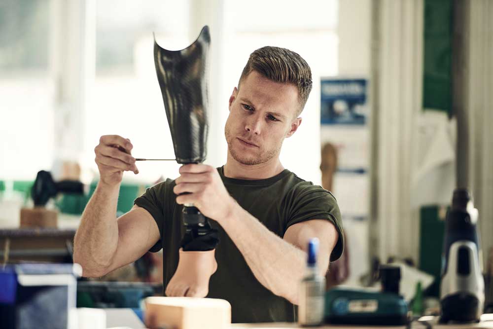 Rehm: Ich habe tatsächlich Anfang 2020 die Arbeit als Orthopädietechniker noch ein bisschen reduziert, weil ich gemerkt hatte, dass ich beides in der Intensität qualitativ gar nicht packe. Aktuell ist mir ist der Sport immer noch sehr wichtig und die Verpflichtungen sind mit der Zeit auch immer mehr geworden. Ich habe mit Rahm eine Lösung gefunden, dass ich für Projekte Ansprechpartner bin und die Einzelbetreuung dafür etwas zurückfahre. Wenn ich ganz als Techniker aufhören und nicht mehr regelmäßig in der Werkstatt stehen würde, das würde mir schon fehlen. Dafür bin ich doch zu gerne in meinem Job tätig. Seit 2017 habe ich mit meinem Prothesen-Ausrüster Össur eine neue Feder und eine Laufsohle entwickelt, die jetzt als „Cheetah Expanse“ auf den Markt gekommen ist. Das war ein spannender Prozess und die Arbeit mit dem Team um Christophe Lecomte auf Island hat wahnsinnig viel Spaß gemacht. Die waren in der Forschungs- und Entwicklungsabteilung genauso gepolt wie ich und wollten das Projekt erfolgreich umsetzen. Einmal sind wir sogar nach einem gemeinsamen Abendessen nochmal in die Werkstatt gefahren, um nachts eine neue Variante zu testen. Das angeschlossene Sanitätshaus hat eine eigene Tartanbahn, auf der ich viele Stunden an Entwicklung verbracht habe.