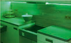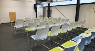Das „ubineum“ als Gebäude, als Form der Zusammenarbeit und als Vision bietet den Netzwerkpartnern ideale Voraussetzungen. Das Besondere am „ubineum“ ist die enge Zusammenarbeit aller beteiligten Unternehmen. Die Partner verfolgen den Gedanken des Netzwerkes unter einem Dach und stimmen sich bedarfsgerecht untereinander ab. So greift eine Leistung in die nächste; schwierige Abstimmungsprozesse werden dadurch vereinfacht. Auf einer Fläche von fast 1.200 m² befinden sich Büro- und Beratungsräume der Partner, ein Konferenzraum für Vorträge und Seminare, Ausstellungsflächen für Produkte und Leistungen (Abb. 4) sowie eine 130 m² große Musterwohnung (Abb. 5 u. 6) zur Präsentation und zum Erleben der entwickelten Technologien und Lösungen.