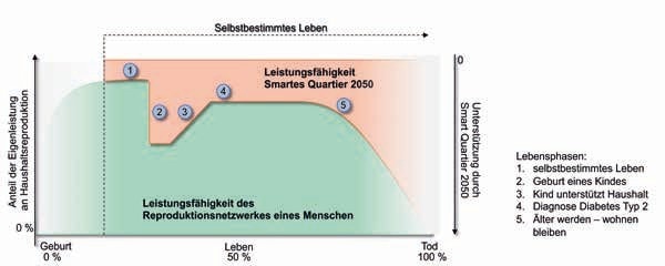 - Aus diesen Gründen wird eine Entwicklung von Technologien und Betreibermodellen angestrebt, die sich neben wirtschaftlichen auch an ökologischen und sozialen Nachhaltigkeitskriterien orientiert und den tatsächlichen Bedarf der Nutzer berücksichtigt. So soll die Akzeptanz technisch assistierter Wohnformen erhöht sowie Markteintrittsbarrieren abgebaut werden. Eine bedarfsgerechte Technik- und Serviceentwicklung betrifft insbesondere die Frage, wie Eigen- und Fremdleistungen in bestehende Alltagsroutinen und Abläufe, bspw. in bestimmten Pflegearrangements, sinnvoll miteinander verzahnt werden können. Gerade die oben zitierte Forschung aus den Bereichen Alter, Pflege und Gerontotechnik zeigt, dass bestehende Technologien und Dienste häufig an den Alltagsroutinen und Nutzerkontexten der Zielgruppe vorbeigehen und entsprechend auf Irritation und Ablehnung stoßen 27.