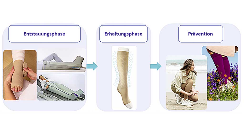 Da eine Mobilisation auch direkt einen besseren Abtransport und Muskelaufbau bedeutet, ist eine frühe Kompressionstherapie im poststationären Bereich nicht wegzudenken.