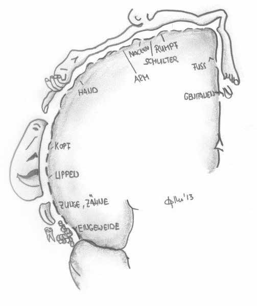 Die kortikale Repräsentation ist das Abbild des Körpers über ein neuronales Netzwerk im primären somatosensorischen Kortex (S1). Die Körperregionen werden dabei nicht aufgrund ihrer Größe, sondern entsprechend der Dichte der sensiblen Rezeptoren abgebildet (Abb. 1).