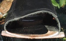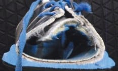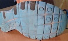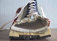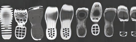 An gebrauchten Schuhen (Abb. 4) 3lässt sich die Vorfußbelastung gut erkennen: Entsprechend der pedografischen Messung braucht sich die Sohle im zentralen Ballenbereich auf, das Material für die Lastaufnahme unter dem Vorfuß wird reduziert, und der Fuß kommt in eine Rinne zu liegen. Dieser Effekt wird verstärkt, wenn in diesen Bereich des Schuhbodens weiche Dämpfungsmaterialien eingebracht werden (Abb. 1).