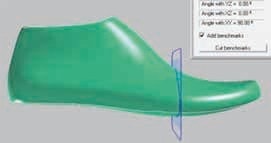 Um das Invertieren zu verhindern, sollte der Vorfuß im Schuh auf einen ebenen Untergrund gestellt werden, der während der gesamten Tragezeit des Schuhs plan bleibt. Wird die Balligkeit entfernt, muss das entfernte Volumen dem Leisten wieder zurückgegeben werden. Dadurch verändert sich bei gleichem Volumen die Geometrie und damit auch der Umfang an den relevanten Messpunkten: er nimmt zu. Dieses Volumen muss umverteilt werden, entweder unter dem Leisten, an den Rändern und/oder auf den Leisten. Beim hier besprochenen Versuch wurde ein Leisten umgebaut (Abb. 8a u. b); der neue Leisten erhielt daraufhin einen geraden Boden und eine optisch erkennbare Veränderung. Diese Leistenform ermöglicht eine fußgerechte barfußähnliche Belastung im Schuh.