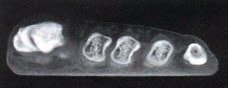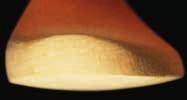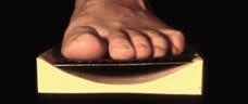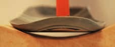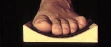 Um das Verhalten des Fußes in der Schrittabwicklung zu ermitteln, wurde die ausgeschliffene Testrinne in Würfel geschnitten, gehbar gemacht und der Druckaufbau im Ballenbereich untersucht 6: Während sich das Vorfußgefüge auf ebenem, planem Untergrund abflacht und ein Druck im Bereich der Ballenmitte entsteht, ändert sich die Art des Druckaufbaus im Vorfuß bei definierter balliger Unterlage. In der Terminal-Stance-Phase wird zwar im Klein- und Großzehenbereich Kontakt aufgenommen, dann aber senkt sich das Vorfußgefüge und nimmt zum Abdruck – trotz invertierten Ballens – in der Mitte des Ballens Druck auf, um Kraft zur Vorwärtsbewegung auf den Boden zu übertragen. Daraus ergeben sich folgende Überlegungen: