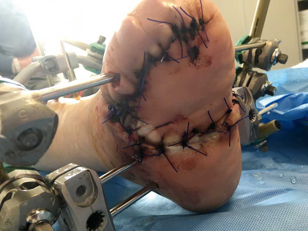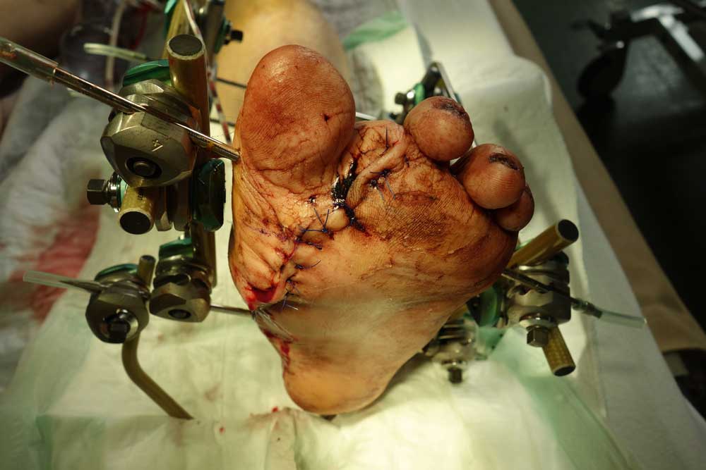Der plastische chirurgische Eingriff im Rahmen einer technisch-orthopädischen Versorgung erfordert eine aufwendige Vorbereitung im Hospital. Diese hat analog zur unfallchirurgischen operativen Vorbereitung die Funktion einer “damage control” und umfasst die generelle internistische und lokale physikalische Vorbereitung des Eingriffs. Im Anschluss an die klinische Untersuchung ist die Bewertung des lokalen Wundzustandes und des Weichteilmantels des Fußes für die präoperative Vorbereitung entscheidend. Der technisch-orthopädische Chirurg muss feststellen, wie sich die Situation des Fußes bezüglich des Schwellungszustands und des Lymphflusses darstellt. Neben der Gesamtdiagnostik und der Operationsplanung muss der Fußbefund – die Anatomie inklusive Verlauf und Funktion der Arterien sowie die aktuelle und die zu rekonstruierende Biomechanik – berücksichtigt werden. Denn all dies wirkt auf den Fuß ein, wenn später der Techniker die Orthese oder den orthopädischen Maßschuh anpasst.