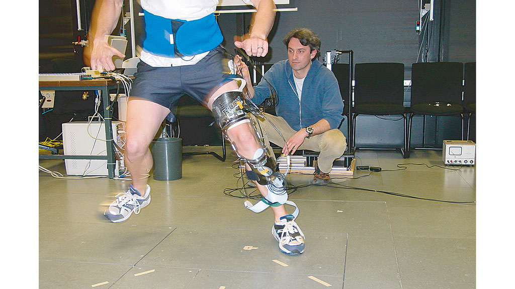 Daraus erwuchs der Wunsch, eine objektive Beurteilung in Form einer In-vivo-Messung an der Sporthochschule Köln, Institut für Biomechanik und Orthopädie, unter der Leitung von Prof. Brüggemann durchzuführen. Untersucht wurde ein Probant mit einer einseitigen, vorderen Kreuzbandruptur, mithilfe einer EMG-Ableitung mit angelegter Orthese bei verschiedenen Sprung- sowie schnellen, sportartspezifischen Schrittkombinationen. Hier konnte folgende Feststellung gemacht werden.