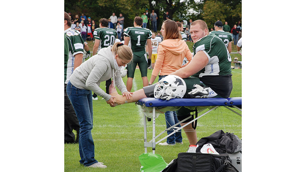 Nach Durchsicht der Literatur (n = 48 papers) entschied sich die Kommission, die drei Sportarten American Football (Abb. 1 u. 2), Motocross (Abb. 3 u. 4) und Eishockey (Abb. 5) näher zu beleuchten. Bei allen drei Risikosportarten mit Rasanztraumen werden Orthesen zur Prävention sowie Knieorthesen zur Reduktion des mechanischen Stresses des Kniegelenkes eingesetzt.