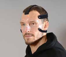 Gesichtsmasken (Abb. 1) können bei Nasenbein- und Jochbeinfrakturen, aber auch bei Verletzungen des Orbitabodens oder des Kiefers sowie sonstiger knöcherner Anteile des Schädels eingesetzt werden. Besonders wichtig ist die rutschfreie Adaption am Kopf des Aktiven mit einer entsprechenden Überbrückung bzw. Entlastung der betroffenen Gesichtsregion. Dazu müssen Auflagepunkte im Dreipunktprinzip aus biomechanischer Sicht definiert werden, um bei einem Kontakt mit dem Gegner oder dem Ball die jeweilige Region möglichst optimal zu schützen. Funktionell wichtig ist dabei auch, die ortsständige Verankerung am Kopf ohne Druckstellen im Bereich der Weichteile (Ohren) zu erzeugen, das Verrutschen der Maske bei einem Körper- oder Ballkontakt nach unten zu vermeiden sowie ein gutes Sichtfeld beim Wechselspiel von Sonne und Schatten bzw. Flutlicht zu garantieren. Trotz eines möglichst großen Sichtfelds dürfen Schutzwirkung und Funktion nicht beeinträchtigt sein. Solche Masken werden in aller Regel individuell nach Gipsabdruck gefertigt; im Einzelfall können aber auch standardisierte Masken zum Einsatz kommen. Dies geschieht oft am Ende der Saison, wenn Spiele über Auf- oder Abstieg entscheiden und eine noch schnellere Versorgung notwendig ist.