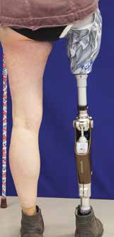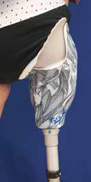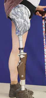 Um das weiche Gewebe zu fassen und die geringe Weichteildeckung des Stumpfes auszugleichen, wird der Silikonliner „Seal-In-X5“ (Össur) eingesetzt. Durch die fünf Dichtlippen wird die geringe Stumpfoberfläche größtmöglich genutzt, um die nötige Haftung im Schaft zu gewährleisten. Als Kniepassteil nutzt die Patientin ein „C‑Leg 3“ in Verbindung mit dem Fuß „Trias“ (Ottobock).