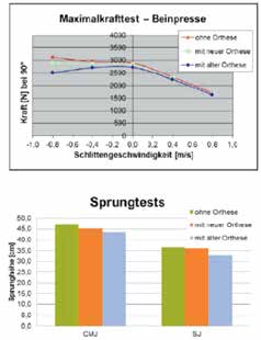 Es wurden ausgewählte Tests der Leistungsdiagnostik Ski alpin mit und ohne herkömmliche Orthesen durchgeführt. Als Ergebnis konnte festgehalten werden, dass der Präventhesen-Prototyp besser abschnitt als herkömmliche Orthesen. Der Vergleich mit und ohne Präventhese zeigte keine relevanten Unterschiede.