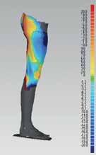 Die Ergebnisse zeigen deutlich die teilweise gravierenden, aber auch sehr individuellen Veränderungen des Muskelumfangs nach den Belastungen. Die Reihenuntersuchung mittels 3‑D-Oberflächenscan (Abb. 4) in verschiedenen skitypischen Situationen vor und nach Belastung stützte die ersten Vermutungen bezüglich der Variabilität der Volumenänderungen je nach individueller Anthropometrie. Gemeinsam waren die Tendenzen zu größeren Volumenänderungen bei kleineren Kniewinkeln. Dies verdeutlichte nochmals die Notwendigkeit der individuellen Ausarbeitung der Orthesen.