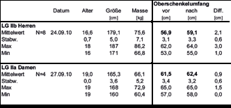 Ausgelöst durch die Volumenveränderungen im Oberschenkel während der Belastung ergaben sich aufgrund der straffen Fixation durch die Klettverschlussbänder Beeinträchtigungen der Muskelfunktion und damit kein ausreichender Tragekomfort über einen längeren Zeitraum. Erste Quantifizierungen der Volumenveränderungen wurden im Rahmen der leistungsdiagnostischen Krafttests vor und nach einer skispezifischen Kraftausdauerbelastung von 75 Sekunden durchgeführt (Abb. 3).