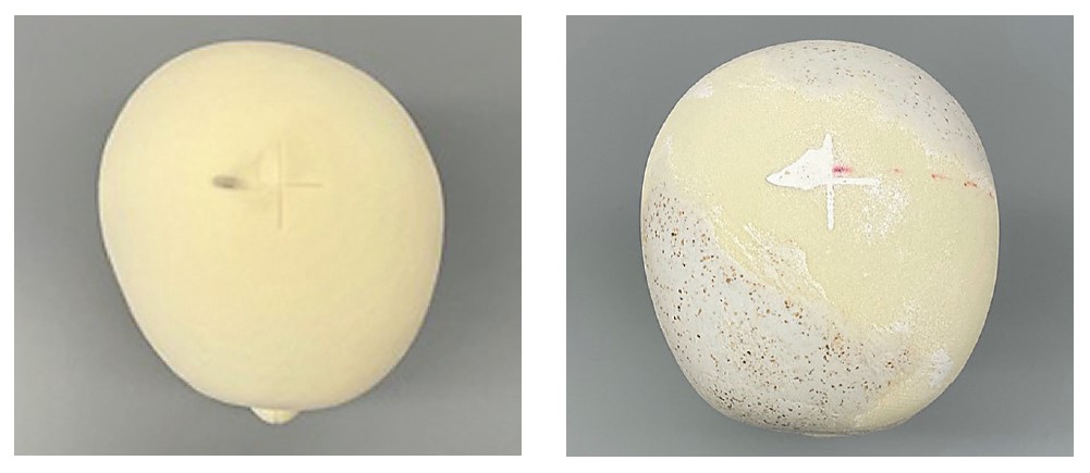 Das gefräste Model wird anschließend so mit Gips bearbeitet, dass eine gleichmäßige Form des Schädels entsteht. In den Bereichen, in denen der Schädel noch nicht so ausgeprägt ist, wird Gips aufgetragen; hier ist ein späteres Wachstum des Schädels möglich. In den Bereichen, in denen der Schädel schon stark gewachsen ist, wird das Modell in seiner Form beibehalten und bildet eine spätere Anlagefläche im Kopfkorrekturhelm (Abb. 5).