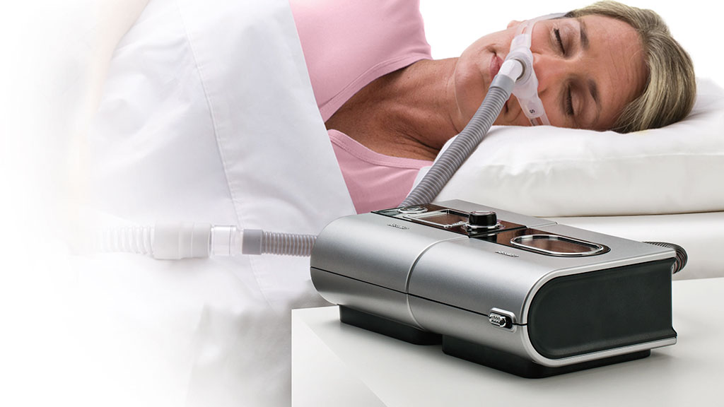 Wenn im Schlaf­la­bor bei einem Betrof­fe­nen eine Schlaf­apnoe dia­gnos­ti­ziert  wur­de – sei es eine „ein­fa­che“ obstruk­ti­ve oder eine kom­ple­xe­re zen­tra­le Atem­stö­rung –, wird dem Pati­en­ten ein Gerät für die nicht-inva­si­ve Beatmung ver­ord­net, das sei­ne Spon­tan­at­mung mit einem dau­er­haf­ten Über­druck unter­stützt. Die­ses Beatmungs­ge­rät hält mit sei­nem Luft­strom die Atem­we­ge offen, sodass es nicht mehr zu den cha­rak­te­ris­ti­schen Atem­aus­set­zern kom­men kann.