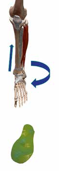 Ferner sollte der Vorfuß während des Gehens in relativer Abduktion ausgerichtet sein, wobei der Vorfußhebel verkürzt und die supinierend wirkende Muskulatur während der Lastübernahme bis zum Einleiten der frühen Schwungphase in eine vermehrte Funktion überführt wird, sodass das Längsgewölbe mittels der medialen Gewölbestütze mit dem höchsten Scheitelpunkt unterhalb des Sustentaculum tali um ca. 4 cm wieder aufgerichtet werden kann. Es soll die exzentrische Funktion des M. tibialis posterior während der Lastübernahme bis zur terminalen Standphase bei der Fersenanhebung verbessert werden. Mit der Tieferlegung des ersten Os metatarsale soll neben der Verkürzung des medialen Vorfußhebels die exzentrische Muskelarbeit des M. flexor hallucis longus während der Fersenanhebung gefördert werden, was mit einer ca. 8 mm starken Vorfußaußenranderhöhung verfolgt wurde. Mit dem lateralen Fersenkeil soll zudem der Calcaneus stabilisiert und die Valgisierung während der mittleren Standphase aufgehoben werden.