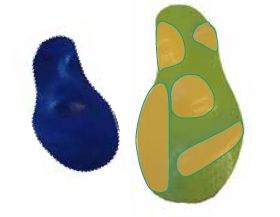 Das Versorgungsprinzip der sensomotorischen Einlage zielt im Allgemeinen darauf ab, eine statische und dynamische Korrektur von Fußfehlstellungen über eine muskuläre, tonusregulierende Wirkung zu erzielen (Abb. 1 u. 2). Dabei gilt es den Grundsatz „form follows function“ zu berücksichtigen. Das Einlagenrelief wird gemäß der individuellen funktionellen Fußsohlenanatomie gestaltet, wodurch für die Planung, Gestaltung und Dimensionierung einer solchen Einlage stets eine eingehende, mitunter langwierige Untersuchung der Patienten notwendig ist. Bei dieser Untersuchung werden Muskel- und Sehnenansätze palpiert und die Bewegungsumfänge der Gelenke aufgenommen. Im Fokus stehen dabei die muskulären Dysbalancen, die in der Fußfehlstellung und im Bewegungsverhalten deutlich werden. Es ist daher notwendig, eine visuelle Ganganalyse durchzuführen. Mit einem manuellen Blauabdruck der Fußsohlenform oder mittels Scanbild können dann die am Fuß wirkenden Hebelarme ermittelt werden. Für die Ausgestaltung des Einlagenreliefs ist es darüber hinaus wichtig zu wissen, ob und wann der Vorfuß z. B. dynamisch in einer relativen Abduktion oder Adduktion zum Rückfuß steht. Bei einer Abduktion ist der mediale Vorfußhebel verlängert, bei einer Adduktion verkürzt. Mit den vorliegenden Informationen können dann Rückschlüsse gezogen werden, ob die am Fuß supinierend wirkende Muskulatur eher einer hypertonen oder hypotonen Funktion entspricht. So ist z. B. bei einer hypotonen Funktion der mediale Vorfußhebel verlängert, und der Vorfuß steht in relativer Abduktion zum Rückfuß. Das Einlagenrelief wird nun so gestaltet, dass einzelne Muskelfunktionen im Gangzyklus mittels Tonuserhöhung oder ‑reduzierung gesteuert werden und somit Einfluss auf ein pathologisches Gangbild genommen werden kann. Die tonusregulierende Wirkung wird dabei unter Berücksichtigung der Muskel- und Sehnenverläufe erzielt. Eine Tonuserhöhung kann durch eine Verkürzung der entsprechenden Muskelstrecke und eine Tonusreduzierung durch die Verlängerung der Muskelstrecke erreicht werden 6.