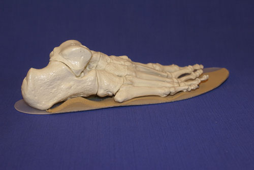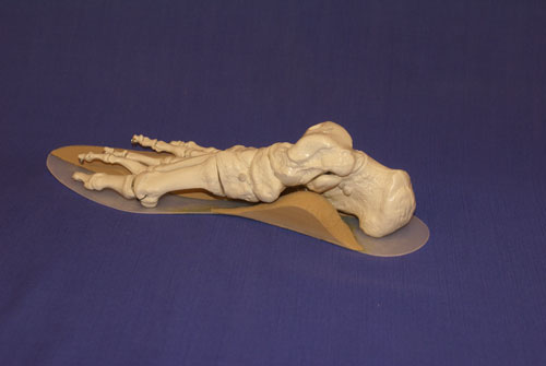 Will man die Pronationsunterstützung konsequent umsetzen, so darf diese nicht erst unter den Metatarsalköpfchen beginnen, sondern muss die gesamte Länge der Metatarsalstrahlen einschließen. Folgt man dabei der anatomischen Form der Metatarsalen, entsteht automatisch eine retrokapitale Erhöhung. Je nachdem, wie stark das Wölbungssystem durch die relative Pronation des Vorfußes schon kollabiert ist, kann auch eine zusätzliche Anstützung zur Aufrichtung der Querwölbung sinnvoll sein.