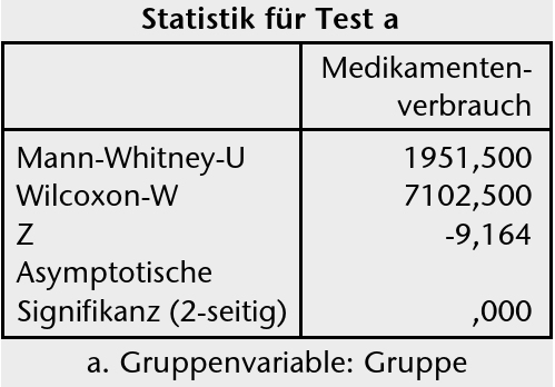 Die Dokumentation erfolgte anhand von standardisierten Frage- und Untersuchungsbögen. Für die statistische Auswertung wurde das Statistikprogramm SPSS (Statistical Package for the Social Sciences) eingesetzt. Die Ergebnisse wurden sowohl mit parametrischen Testverfahren (z. B. T‑Test für zwei unabhängige Stichproben) als auch mit nichtparametrischen Testverfahren (z. B. Mann-Whitney-U-Test für unabhängige Stichproben) auf deutliche Unterschiede überprüft.