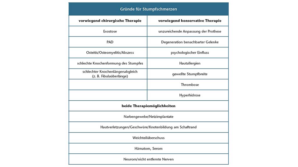 ![Gründe für Stumpfschmerzen und entsprechende Therapiemöglichkeiten, adaptiert von Dwornik et al. (Dwornik G, Weiss T, Hofmann GO, Bruckner L. [Residual limb and phantom pain : Causes and therapeutic approaches]. Der Orthopäde, 2015; 44 (6): 435–444. Epub 2015/05/31. https://doi.org/10.1007/ s00132-015-3122-z. PMID: 26024778).](https://360-ot.de/wp-content/uploads/2021/07/tab-1-800x445.jpg)