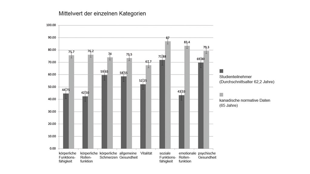 Für alle Teilnehmer wurde eine standardisierte Anamnese durchgeführt, die Angaben zum Amputationsniveau beinhaltete, den Grund für die Amputation, Vorhandensein bzw. Nichtvorhandensein von PAD und/oder Diabetes mellitus, Raucheranamnese, Mobilitätsgrad (K‑Level) auf Grundlage des Amputee Mobility Predictor 36, Schmerzintensität bei Verwendung der Prothese (bewertet anhand des Fragebogens zur Prothesenevaluation, Gruppe 2, Frage I, in dem die Schmerzen mit einem visuellen Standardanalogwert [VAS] bewertet werden) 37 und die täglichen Zeiten des Prothesengebrauchs. Nach Aufnahme der standardisierten Krankengeschichte füllten die Teilnehmer den SF-36-Fragebogen aus.