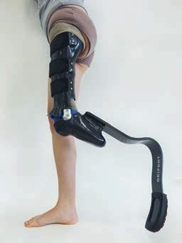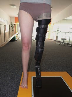 Die zentrale Problematik ist der Bewegungsumfang des oberen Sprunggelenkes, der nach Neutral-Null DE/PF 20/0/40 beträgt. Im Fall der BorggreveUmkehrplastik übernimmt das Knöchelgelenk ein begrenztes Bewegungsausmaß des Knies von Ex/Flex 0/0/90. Somit liegt der Fokus des Aufbaus in der Dynamik des Knöchel- bzw. Kniegelenks. Durch die eingeschränkte Flexion und die im Vorfuß überlange J‑Feder entsteht in der Schwungphase kaum Bodenfreiheit (Abb. 3).