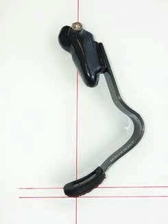 Die Stellung der J‑Feder im Raum beeinflusst den Härte- bzw. Weichheitsgrad: Je flacher die Feder steht, umso weicher und flexibler erscheint sie. Entsprechend empfindet der Nutzer die Wirkung der Feder umso steifer, je senkrechter sie steht. Die jeweilige Position der Sportfeder wirkt sich dementsprechend auf die Krafteinbzw. ‑ausleitung aus. Die schlussendliche Stellung muss in enger Zusammenarbeit und insbesondere nach Empfinden des Anwenders, abhängig von seiner Konditionierung, über einen längeren Erprobungszeitraum festgelegt werden (Abb. 5).