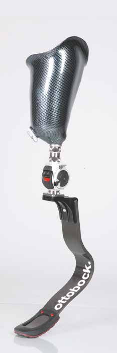 Innerhalb der ersten zwei Jahre absolvierte Philipp seine Trainings- und auch Wettkampfeinsätze mit einem Total-Knee 2000 (Abb. 5) unter der Verwendung eines Modular-3-Carbon-Fußes (Abb. 6) (beides Fa. Össur). Mit steigender Trainingsintensität stellten die Trainer und Philipp allerdings fest, dass sich sein Laufbild mit steigender Geschwindigkeit kontinuierlich verschlechterte. Seit dem Spätsommer 2012 nutzt Philipp daher das Sport-Kniegelenk 3S80 (Abb. 7), welches in Verbindung mit einem 1E90 Sprintfuß (Abb. 8) (beides Fa. Otto Bock) für ihn die optimale sportliche Lösung darstellt.