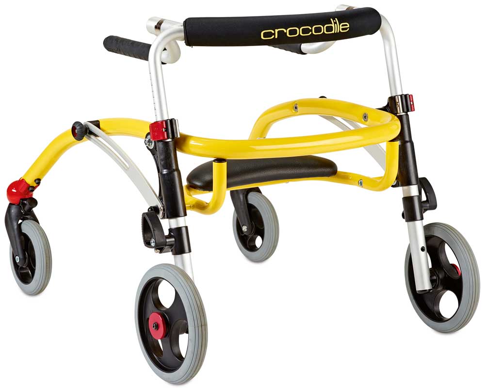 Ein Rollator (Abb. 7) ist angezeigt, wenn es bei den jungen Patienten eine vorhandene, aber nicht ausreichende Gehfähigkeit zu unterstützen gilt. Es gibt Modelle, die geschoben werden (Rollator, Anterior-Walker), und Modelle, die gezogen werden (Posterior-Walker). Beide entlasten die untere Extremität dadurch, dass die obere Extremität Gewicht übernimmt und stützt. Zur Frage, ob die anteriore oder die posteriore Variante die bessere ist, gibt es viele Meinungen, aber nur wenig Evidenz. Die Studienlage zu diesem Thema ist dünn; nur eine ältere Arbeit von Eun Sook Park et al. aus dem Jahr 2001 vergleicht die Effekte der beiden verschiedenen Walker-Typen auf die Gangparameter 13. Die Autoren stellen fest, dass ein Posterior-Walker besser geeignet ist, den Oberkörper aufzurichten und eine größere Schrittlänge zu erzielen. Ein Unterschied bezüglich der Gehgeschwindigkeit oder des Sauerstoffverbrauchs als Indikator für die Anstrengung konnte jedoch nicht festgestellt werden.