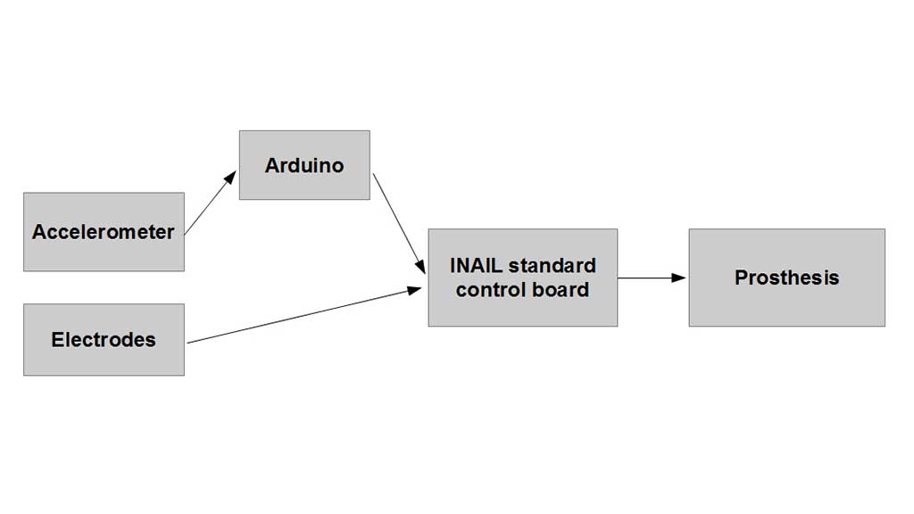 Die Autoren konzentrieren sich auf die Steuerung einer Prothese mit drei elektromechanischen Gelenken: Hand, Handgelenk und Ellenbogen. Zur Steuerung der Hand sehen sie Standard-EMG-Elektroden, zur Steuerung des Handgelenks und des Ellenbogens den Inertialsensor vor. Der Ansatz mit Zweifach-Interface ermöglicht darüber hinaus die gleichzeitige Steuerung zweier verschiedener Gelenke.