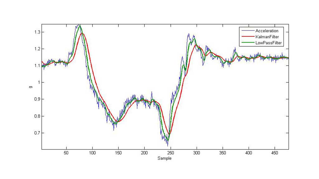 Die Daten sind, vor allem infolge von Vibrationen und unwillkürlichen Bewegungen, verrauscht. Um dieses Problem zu lösen, wurde mit zwei verschiedenen Filtern experimentiert: