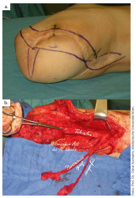 Sto­mare­vi­sio­nen auf­grund chro­ni­scher Irri­ta­tio­nen bei zu engem oder zu lan­gem Sto­ma­ka­nal (bei Weich­teil­plus), bei Hyper­gra­nu­la­tio­nen und über­hän­gen­den Weich­tei­len in Stom­a­nä­he machen die Mas­se an ope­ra­ti­ven Revi­sio­nen aus 6. Viel sel­te­ner erfol­gen ner­ven­chir­ur­gi­sche Ein­grif­fe und die­se wie­der­um sel­te­ner im Bereich des N. femo­ra­lis und sei­ner Äste als im Bereich des N. ischia­di­cus und sei­ner Äste (N. tibia­lis, N. pero­neus com­mu­nis, pro­fun­dus, super­fi­ci­a­lis) für die unte­re Extremität.