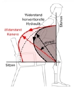 Während Kenevo für das Aufstehen den Extensionswiderstand niedrig schaltet, ist die Widerstandscharakteristik für das Hinsetzen in Flexionsrichtung aktiv (1 in Abb. 5). Ab 45° gestreckter Position sperrt das Gelenk in Beugerichtung (2 in Abb. 5), um ein Zurücksinken zu verhindern. Sollte der Anwender es nicht schaffen, durch die Unterstützung der Sperre aufzustehen, erkennt das Gelenksystem über die Raumlageeinheit die Rückwärtsbewegung der Hüfte und schaltet in die Funktion zum unterstützten Hinsetzen um (3 in Abb. 5).