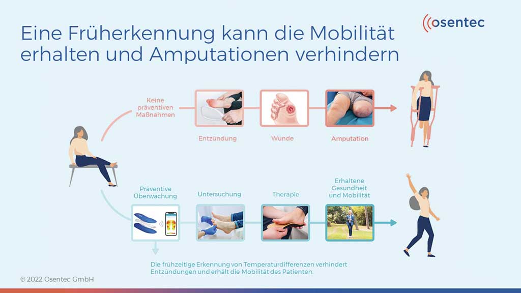 Das Resultat des Forschungsprojekts ist ein Spin-off (Ausgründung) namens Osentec GmbH (Orthopedic Sensor Technologies), das diese Lösung zur Früherkennung von Geschwüren und Wunden bei Diabetespatienten auf den Markt bringt. Die Lösung besteht aus zwei Komponenten: