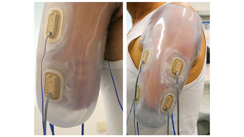 Derzeit sind in dem Prothesenschaft die sechs Elektroden als Saugelektroden eingebaut. Zu einem späteren Zeitpunkt ist eventuell auch an einen HTV-Schaft zu denken, der aktuell noch nicht zum Tragen kommt.