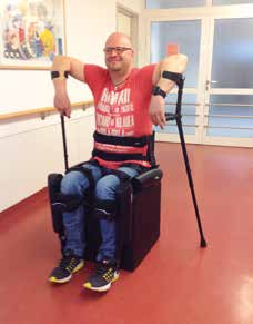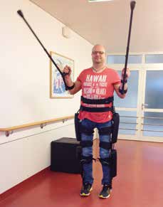 Die ersten Meilensteine sind der Transfer in das System und dessen Anlegen. Anfangs ist hierbei deutliche therapeutische Unterstützung erforderlich. Nach und nach übernimmt der Anwender die notwendigen Schritte, um in das System hineinzusteigen und es anzulegen, wobei die Therapeuten sich immer mehr zurückziehen. Nach erfolgreichem Einsteigen und Anlegen folgt das Üben von Aufstehen (Abb. 1) und Hinsetzen.